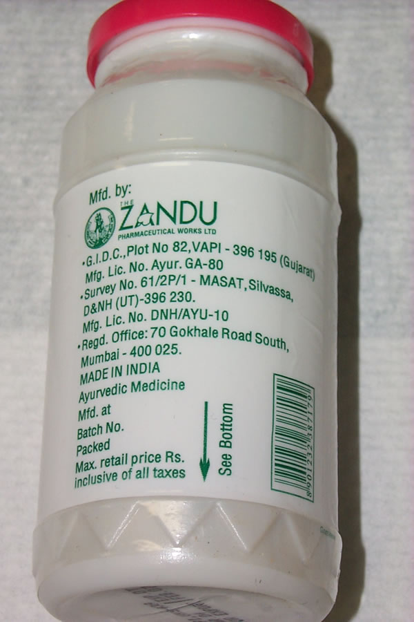 - Maha Sudarshan Churna powder, produced by Zandu Pharmaceuticals, Mumbai, India