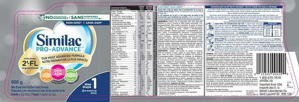 | Abbott | Similac Pro-Advance Step 1 Milk-Based Iron-Fortified Infant Formula Powder | 658 g | 0 55325 00249 9 | All lot codes where: |