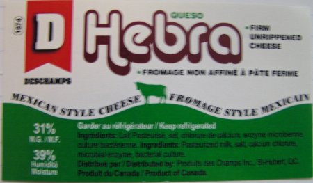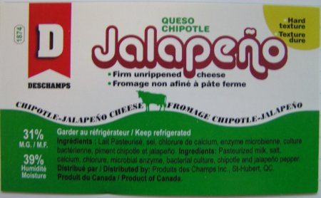 | Deschamps | Queso Chipotle Jalapeno | 300 – 400 g | None | 30 DEC 2011 |