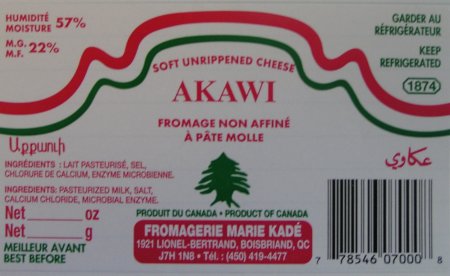 | Fromagerie Marie Kadé | Akawi | 300 – 400 g | 7 78546 07000 8 | 08 MAR 2012 |