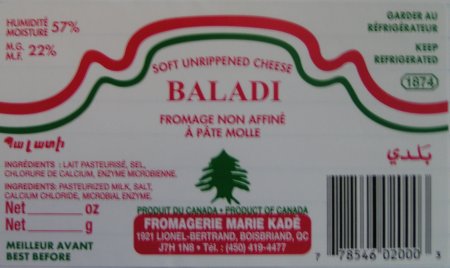 | Fromagerie Marie Kadé | Baladi | 300 – 400 g | 7 78546 02000 3 | 08 FEB 2012 |