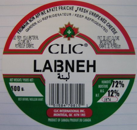| Clic | Labneh | 500 g | 0 58504 70815 1 | 27 DEC 2011 |
