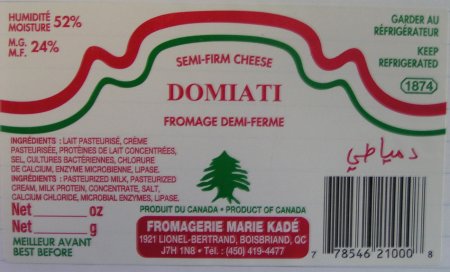 | Fromagerie Marie Kadé | Domiati | 300 – 400 g | 7 78546 21000 8 | 04 FEB 2012 |