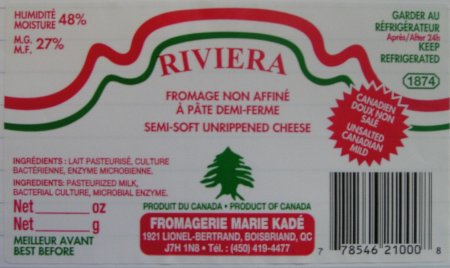 | Fromagerie Marie Kadé | Riviera | Approx. 2 kg | 7 78546 21000 8 | 07 NOV 2011 |