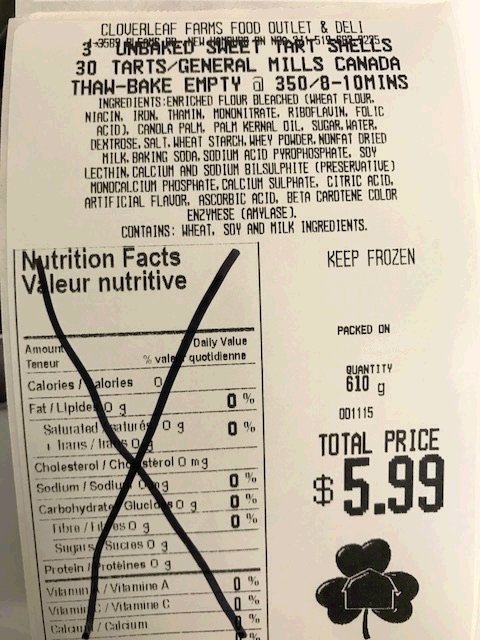 Sold in Ontario from * Please note that these tart shells were repacked from Apple Valley brand products by Clover Leaf Farms Food Outlet & Deli. |
