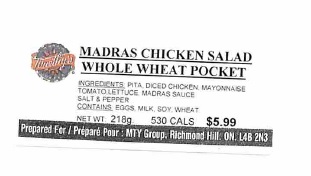 | Timothy's | Madras Chicken Salad Whole Wheat Pocket | 218 g |