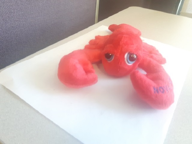 This recall involves lobster plush toys. The lobster plush toys are approximately 23 cm long with Nova Scotia, New Brunswick or Prince Edward Island written on the left claw.