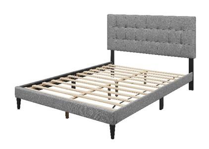 | Bellaire Tufted Upholstered Low Profile Platform Beds | 80053 | Warm grey bed frame with platform supports which does not require a box spring. This model does not have a center support leg halfway along the side rail. |