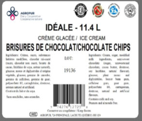| Idéale | Chocolate Chips Ice Cream | 11.4 L | Lot: 19136 | 74276 12725 |