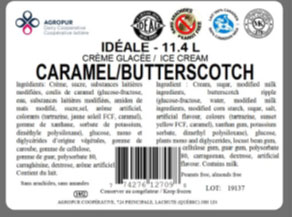 | Idéale | Butterscotch Ice Cream | 11.4 L | Lot: 19137 | 74276 12709 |