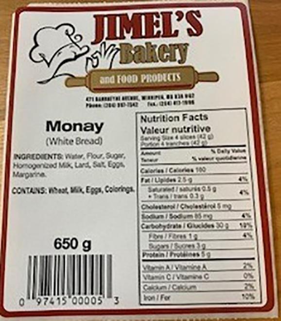 | Jimel's Bakery | Other baked goods purchased at Jimel's Bakery, 471 Bannatyne Ave., Winnipeg, MB | Various | Various | All units sold up to March 22, 2022, inclusive |