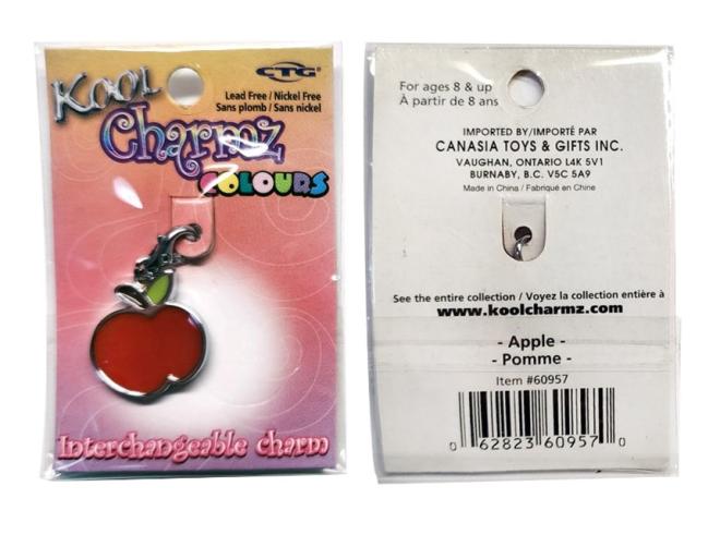Kool Charmz Colours Strawberry, Heart & Arrow, and Apple Interchangeable charm recalled due to lead in excess of allowable limits