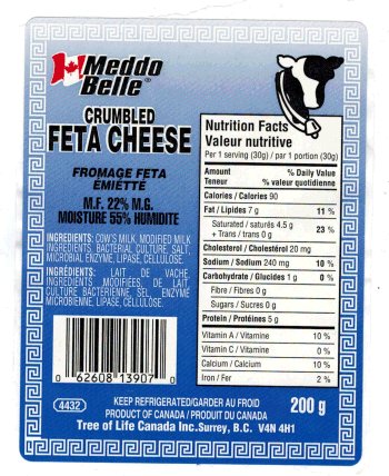 | Meddo Belle | Crumbled Feta Cheese | 200 g | Best Before 14 DE 13 | 0 62608 13907 0 | |