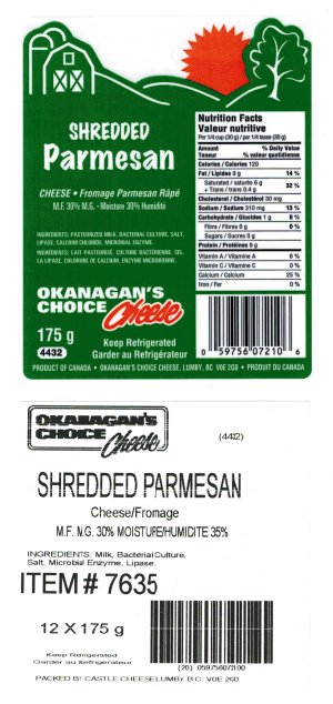 | Okanagan's Choice Cheese | Shredded Parmesan Cheese | 175 g | Best Before 14 DE 31 | 0 59756 07210 6 | |