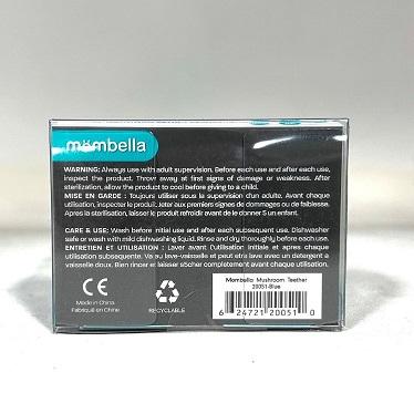 | 20051 | Mombella Mushroom Teether | Blue | 624721200510 | Bottom of retail packaging | 122721-37 111122-37 | Bottom of retail packaging |