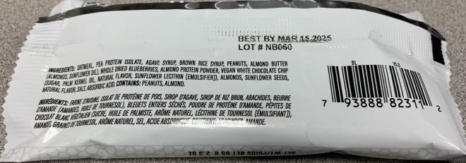 | Nutrabolics | Feed Me Vegan Real Food Protein & Oats – Frosted Blueberry Cobbler | 65 g | 7 93888 82311 2 | Best By: MAR 15 2025 LOT # NB060 |