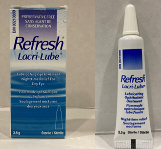 AbbVie Corporation of Canada is recalling all lots of Refresh Lacri-Lube eye ointment because some tubes may leak, which could lead to contamination with bacteria and other microbes and the risk of infection. Seniors and those with a weakened immune system may be at a higher risk.