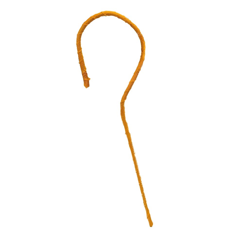 This recall involves only the staff/hook accessory of The Shepherd's Treasure Shepherd Boy with Staff toy. The shepherd figure has orange yarn hair, a white robe with a red vest and green sash and holds a fabric-covered, curved shepherd's staff/hook.