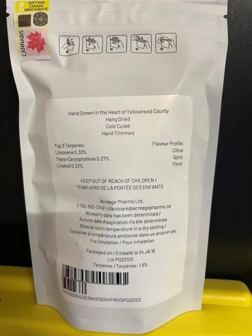 Sirona Pharma Inc. (Acreage Pharms Ltd.) recalls one lot of Peers Cannabis Giggly Bits Sativa dried cannabis