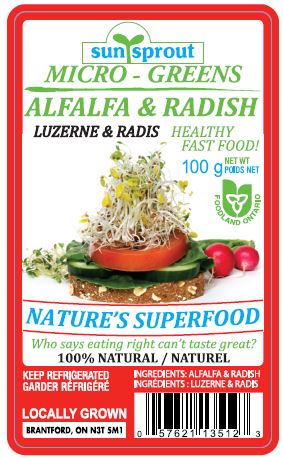 | Sunsprout | Micro â Greens Alfalfa & Radish | 100 g | 0 57621 13512 3 | All best before dates up to and including BBOCT05 |