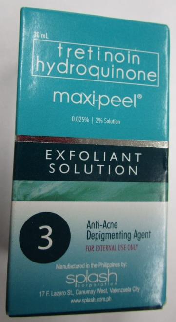 | Maxi Peel exfoliant solution 3 | Skin exfoliant | Labelled to contain tretinoin |