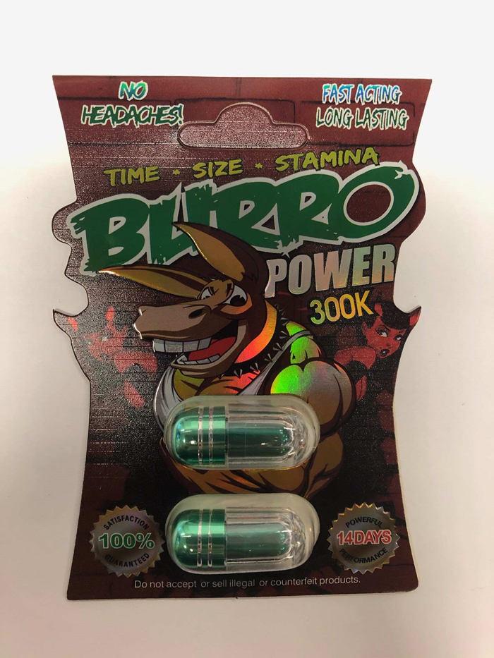 Product with similar packaging (previously seized) was tested and found to contain sildenafil |