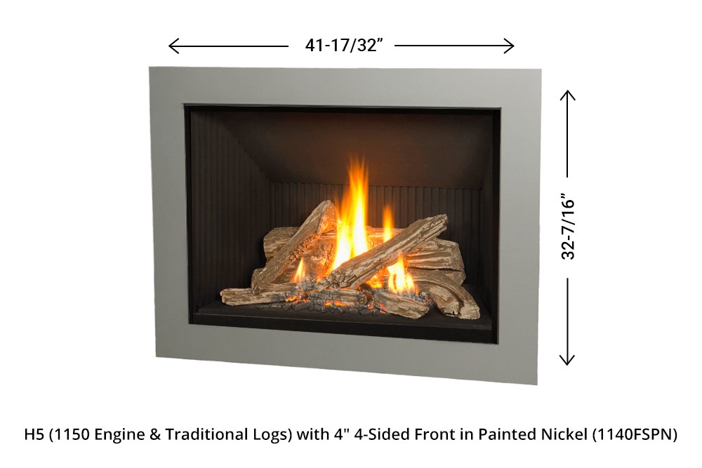 This recall involves propane H5 Series Fireplace models 1150ILP and 1150JLP with various trim. The model and serial number information is located on a card to the right hand side of the fireplace box.