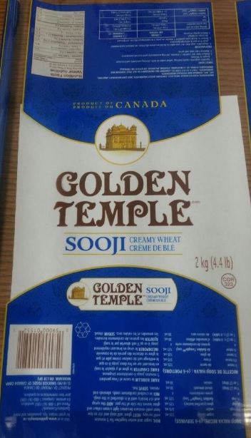 | Golden Temple | Sooji Creamy Wheat | 2 kg | Lot codes containing BB/MA 2018 JA 18 and 6 292 548 | 0 59000 01552 1 | Only product with a best before date of January 18, 2018 (2018 JA 18) and the production code 6 292 548 is being recalled. |