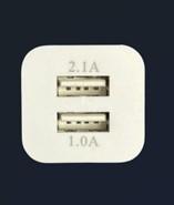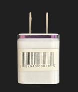 Ce rappel vise l’adaptateur secteur USB double, modèle LDT-3GI-B5. Le produit concerné est un chargeur USB de forme cubique, de couleur blanche, avec une fine couche colorée sur le bord de la surface. La couleur de la couche est disponible en argent, bleu, violet et rouge. Le texte « 2.1 A et 1.0A » est imprimé sur le côté du port USB du produit.