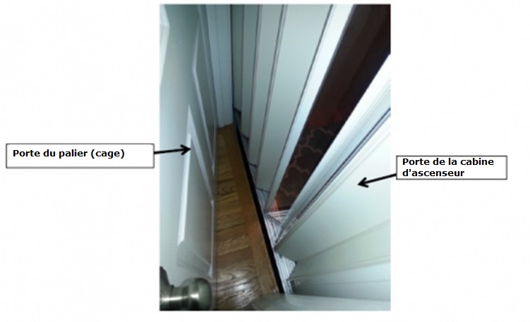 - Problème: Les enfants peuvent se coincer entre la porte du palier extérieur (cage) et la porte ou la barrière de la cabine d'ascenseur.