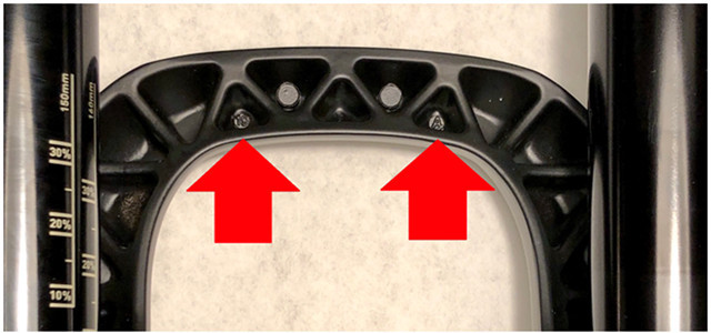 Le présent rappel vise les fourches à suspension avant SRAM (RockShox) Lyrik et Yari pour les vélos à roues de 29 pouces. Les fourches portant un numéro de série s'inscrivant dans la plage allant de 02T95514009 à 08T96214665 et sur lesquelles figure un code de moulage « 18 » et « O » ou « 19 » et « A » apparaissant sur la partie inférieure des fourches sont rappelées. Le numéro de série figure à l'arrière de la tête de la fourche. Le code de moulage figure à l'intérieur de la soudure étoilée de l'arc, comme il est indiqué dans l'image.