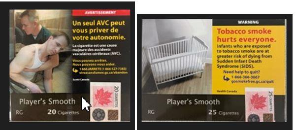 | Player’s Smooth RG (Player’s Velouté) | 20 | Cartouches | Ont., Alb., C.-B., Man., Sask., N.-É., N.-B., Î.-P.-É., T.-N.-L., T.N.-O | 38## ## à 48## ## | 000005936534 |