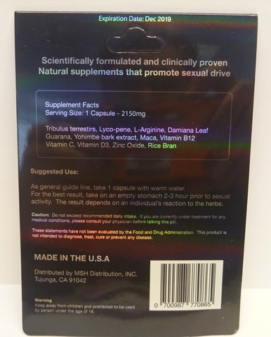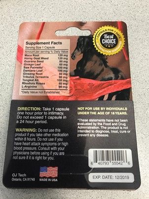 L’analyse antérieure d’un produit ayant un emballage semblable a révélé la présence de sildénafil et de tadalafil non déclarés. (Ajout le 6 juin 2017) |