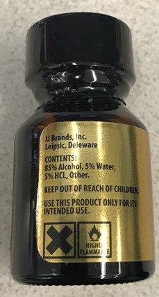 La présence de nitrites d’alkyle était mentionnée sur l’étiquette de produits ayant un emballage semblable saisis auparavant. |