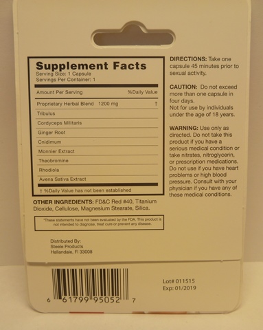 L’analyse antérieure d’un produit ayant un emballage semblable a révélé la présence de sildénafil non déclaré. (Ajout le 6 juin 2017) | |