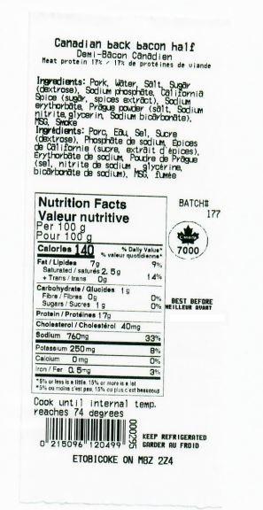 | European Butcher | Bacon canadien tranché | Variable | Débutant par 0 200029 | « Batch » #177 |