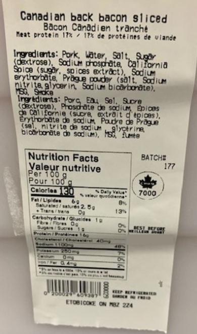 Rappel de Bacon canadien de marque European Butcher en raison de la bactérie Listeria monocytogenes