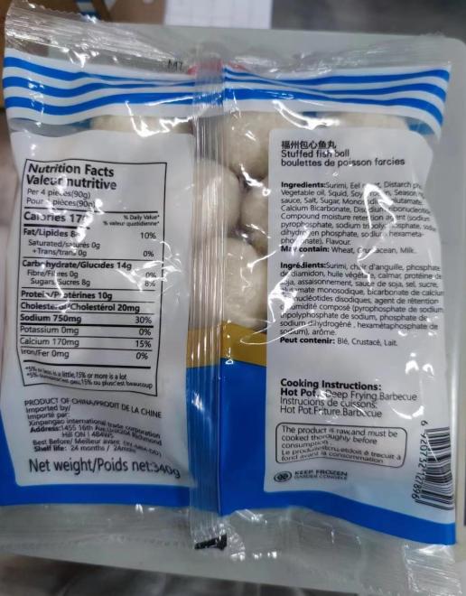 | S.O. (caractères chinois seulement) | Boulettes de poisson farcies | 340 g | 6 920732 127896 | 07/02/2024 |