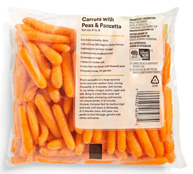 | 365 Whole Foods Market | Mini-carottes biologiques | 907 g | 0 99482 46565 0 | Toutes les dates « meilleur avant » du 11 septembre au 2 novembre 2024 inclusivement |
