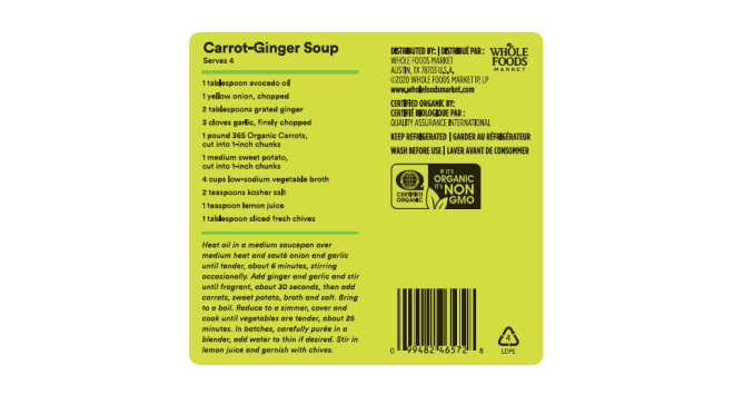 | 365 Whole Foods Market | Carottes biologiques | 454 g | 0 99482 46571 1 | Tous les produits vendus du 14 août au 23 octobre 2024 inclusivement |
