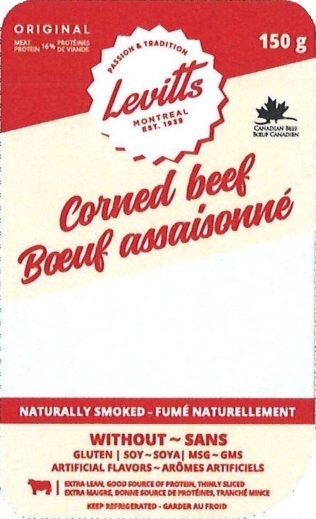| Levitts | « Smoked Meat style Montréal » | 150 g | 8 82756 71084 2 | MEILLEUR AVANT 2020/DE/23 ETA 48 |