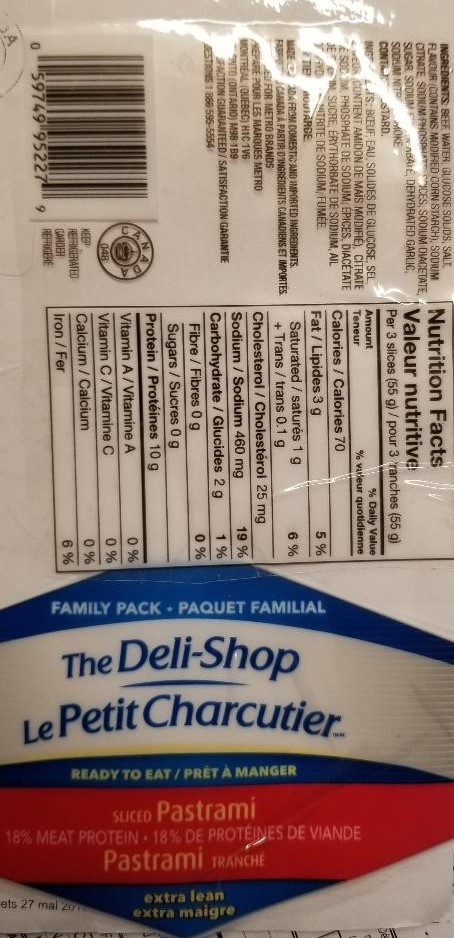 | Le Petit Charcutier | Pastrami tranché | 175 g | 0 59749 95373 3 | MEILLEUR AVANT 2020/DE/11 ETA 48 |