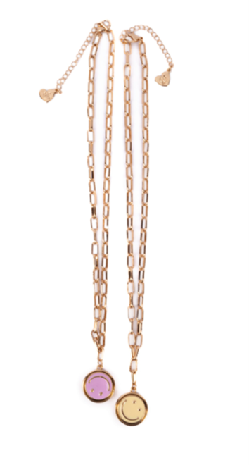 Le présent rappel vise les bijoux Boutique Chic - All Smiles Spinner, dont le collier, le bracelet et la bague. Les bijoux en métal doré sont ornés d'une breloque bonhomme sourire tournante. Le numéro de modèle, le numéro de lot et le code CUP figurent au dos de l'emballage.