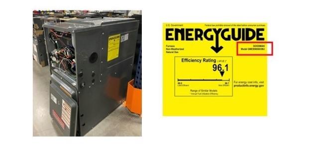 Les appareils concernés peuvent être identifiés grâce aux numéros de série figurant sur le serpentin de l’évaporateur ou sur le boîtier, qui se trouve au-dessus de la fournaise installée verticalement. La marque et le numéro de modèle de la fournaise se trouvent sur votre fournaise, sur l’étiquette « Energy Guide ». Les consommateurs peuvent se référer aux instructions de l’outil de vérification du modèle de Goodman à l’adresse suivante : https://www.recallrtr.com/drainpan.