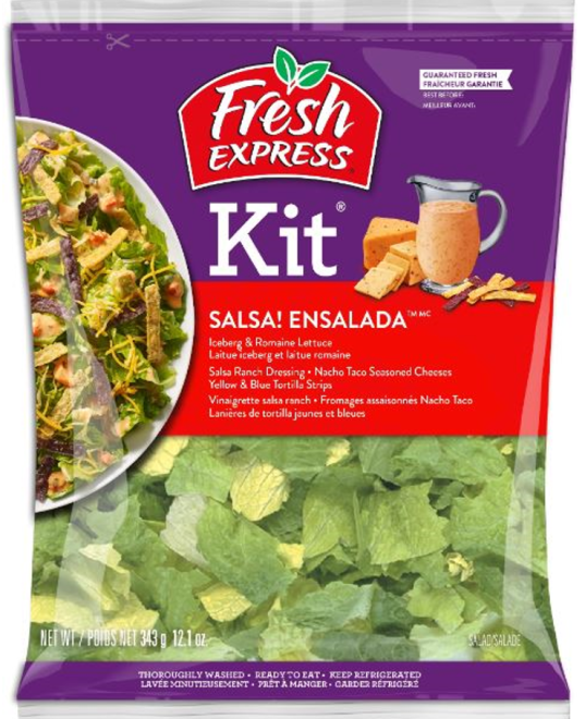 | Fresh Express | Kit de salade « Salsa! Ensalada » | 343 g | 0 71279 30951 4 | Dates « Meilleur avant » de Jan-08-24 jusqu'au Feb-22-24 inclusivement |