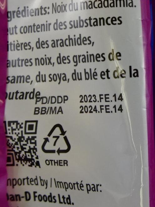 | Dan-D Pak | Noix de macadamia crue | 100 g | 7 70795 52260 4 | DDP 2023.FE.14 MA 2024.FE.14 |