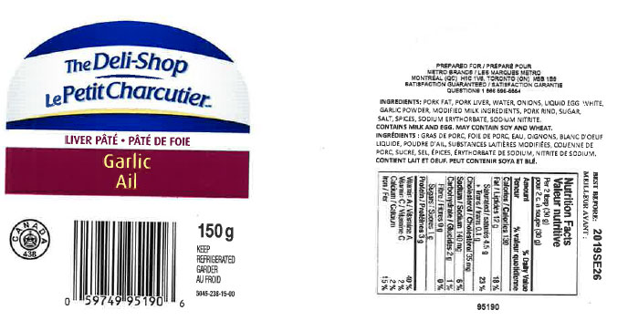 | Les Specialites Prodal (1975) Ltee | Pate de foie à l'ail | Variable | Toutes dates « Meilleur avant » jusqu'au 2019OC18 inclusivement | Variable |