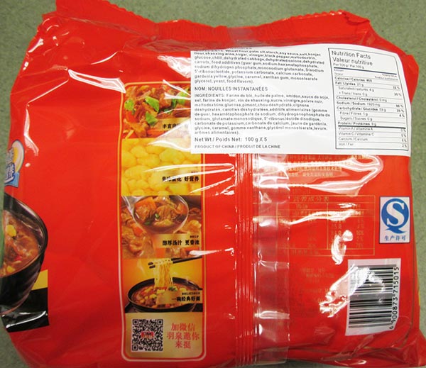 « Hot Beef Noodle » – Nouilles instantanées | 101 g x 5 | Tous les codes pour lesquels la présence d'oeufs et de sésame n'est pas déclarée sur l'étiquette. |