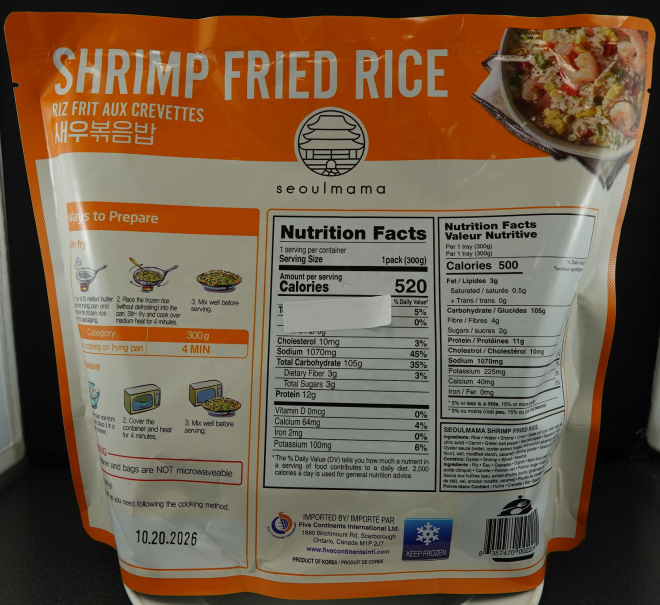 | Seoulmama | Riz frit aux crevettes | 600 g | 8 357470 002204 | « BEST BEFORE » 10.20.2026 |