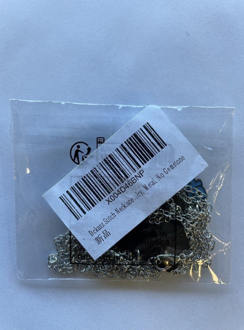 Cet avis concerne le collier pour meilleurs amis Stitch et Scrump Dckazz. Les colliers à pendentifs métalliques bleus et roses sont vendus en paire dans un sac en plastique portant le numéro de série X004D46BNP.
